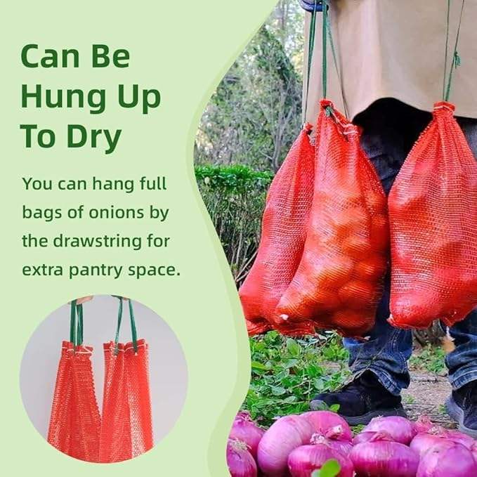 Bolsas de malla reutilizables ecológicas para almacenar cebollas, bolsa de red transpirable con cordón, bolsas multifuncionales para colgar productos.
