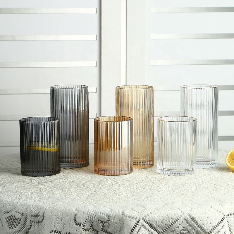 Taza de té Simple moderna reutilizable ecológica, taza de batido para el hogar, taza de vidrio para beber con rayas verticales, taza de café de 250ml/360ml
