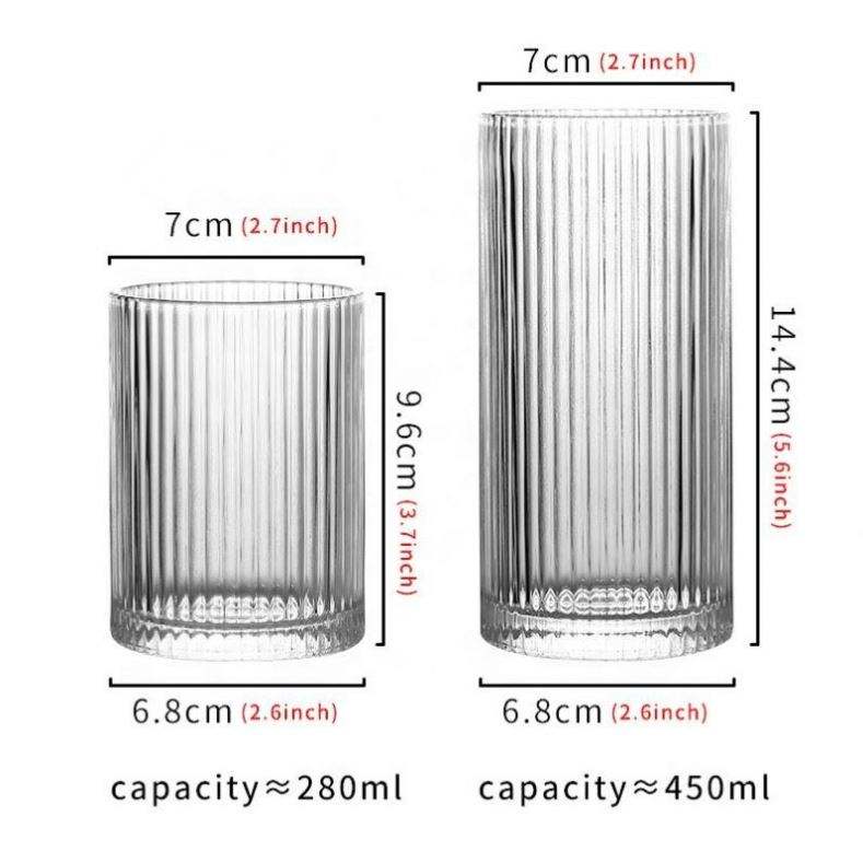 Nombre del producto:Vaso de vidrio con rayas verticales Taza de café
