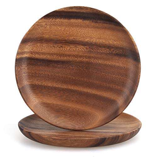 Juego de Cuatro Platos Base Redondos de Madera de Mango con Acabado Natural, Ecológicos, para Servir Comida, Ideales para Cenas y Catering