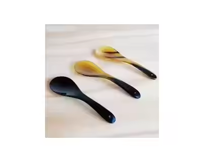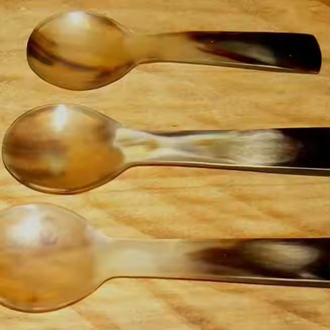 Cuchara de cuerno de búfalo de madera redonda pequeña ecológica, juego de cubiertos de vajilla de acero con espejo para servir en fiestas con artesanías de media luna