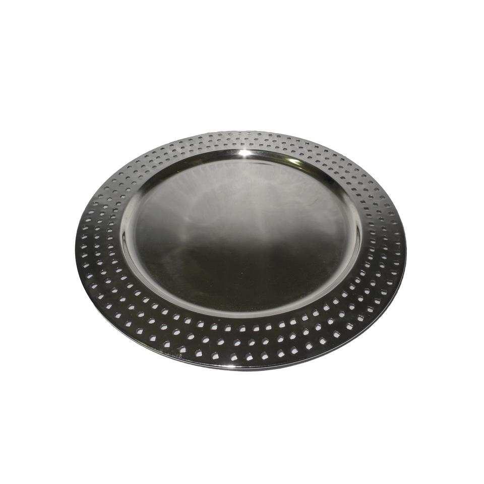 Plato de Servicio Redondo de Acero Inoxidable Ecológico con Acabado en Níquel para Decoración de Mesa