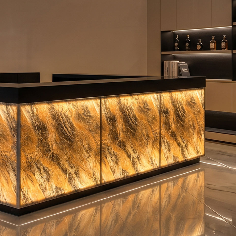 Panel de Piedra Polimérica Translúcida Ecológica con Vetas de Mármol para Vestíbulo de Hotel