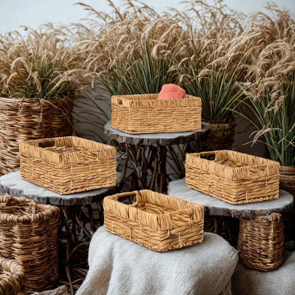 Cesta Rectangular Vintage Ecológica de Jacinto de Agua, Organizador de Almacenamiento Tejido Natural para el Hogar, Elección Popular Viet Anh