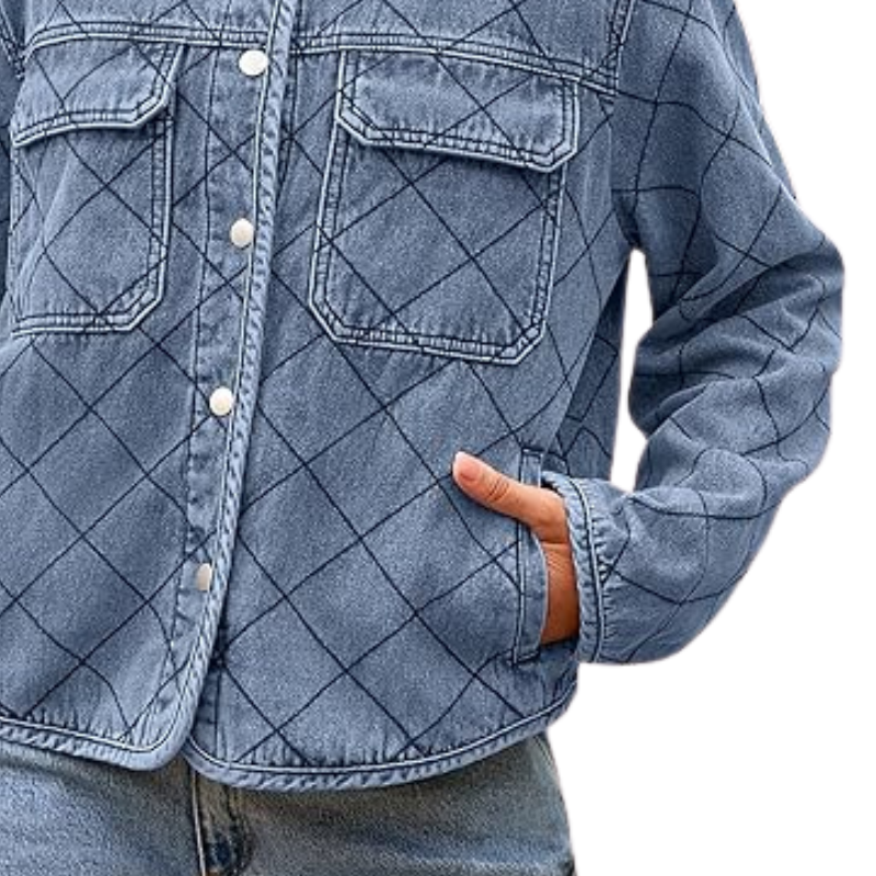 Chaqueta Vaquera Acolchada Lavada Ecológica para Mujer, Sexy, Corte Corto, Secado Rápido, Transpirable, 100% Algodón, Manga Larga, Abotonada, Verano