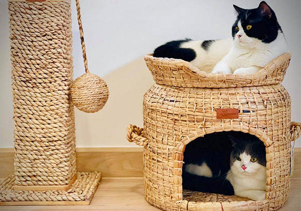 Casa ecológica para mascotas con jacinto de agua para gatos y perros pequeños con cojín y Juguete