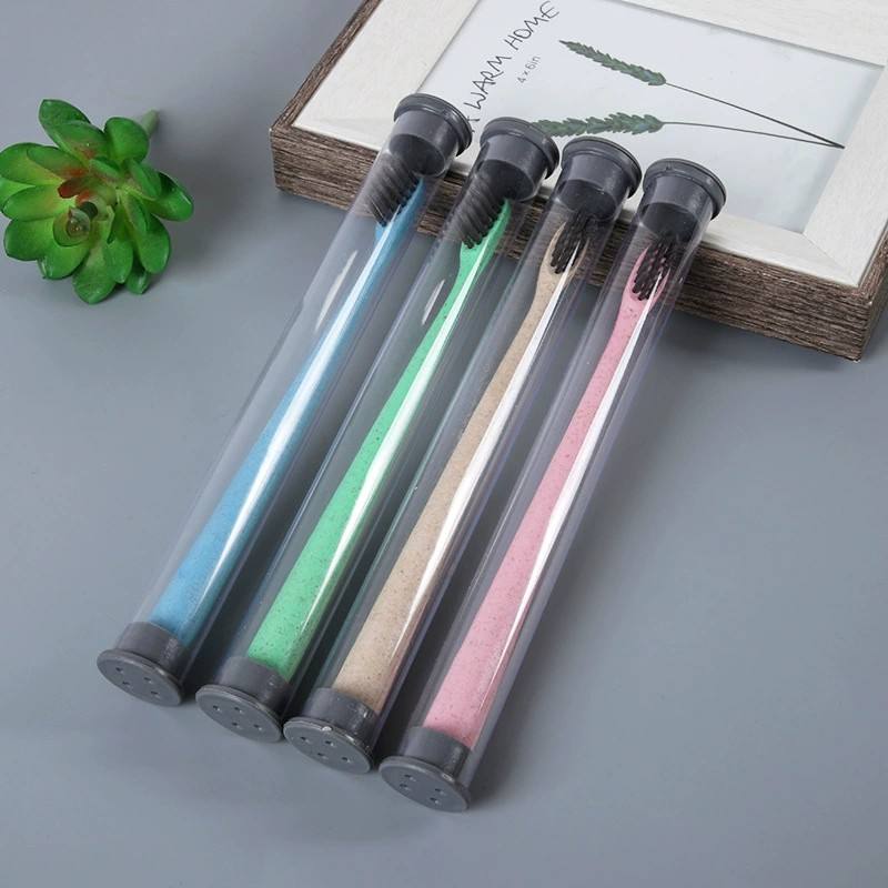 Paja de trigo ecológico cepillo de dientes de carbón de bambú suave cerdas de cepillo de dientes de grado de alimentos de cepillo de dientes de manejar