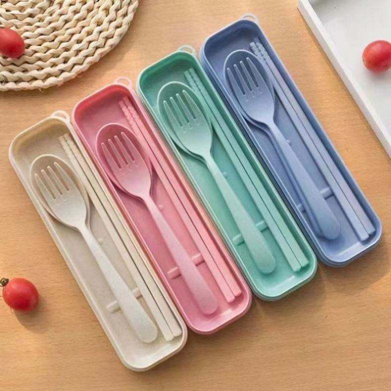 Juego de Cubiertos Ecológicos de Paja de Trigo para Niños, Cubertería Portátil de Viaje con Estuche