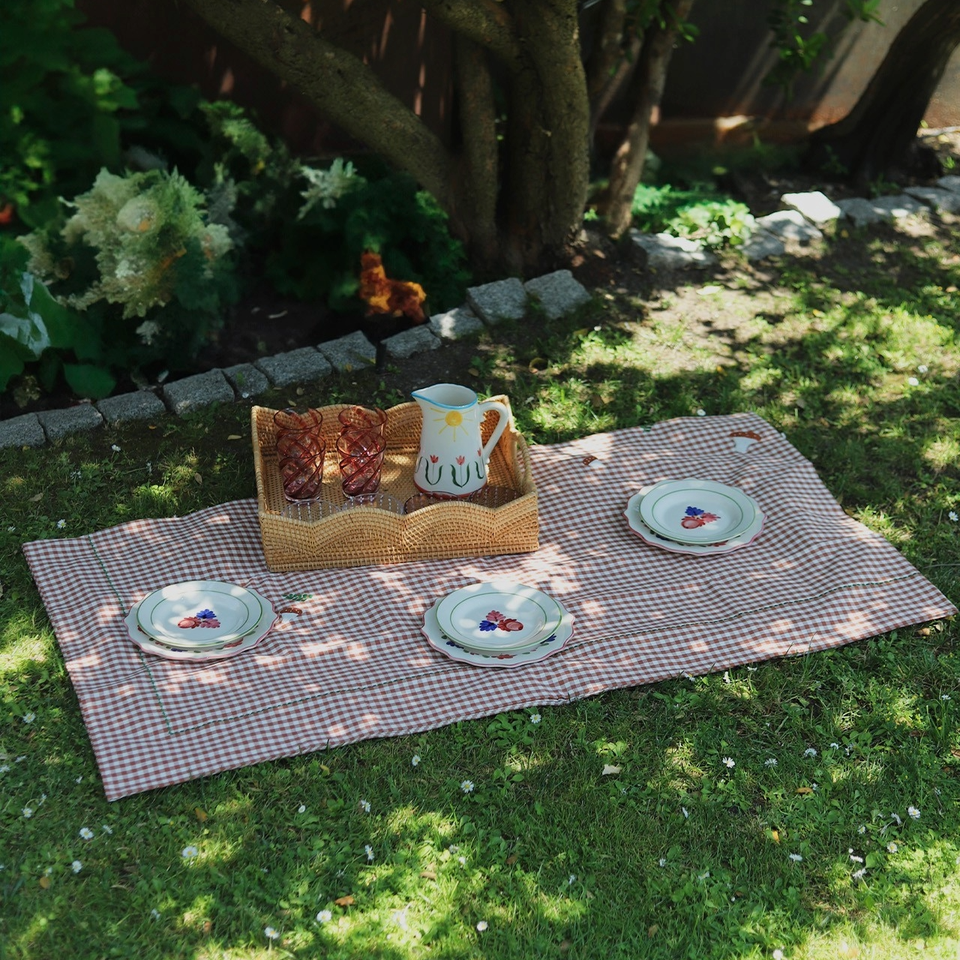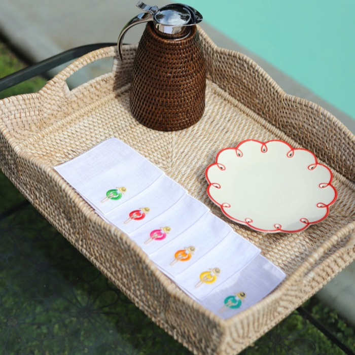 Bandeja de servicio rectangular de ratán tejido ecológico con bordes festoneados y asas para té, café, desayuno, hogar, cocina, comedor