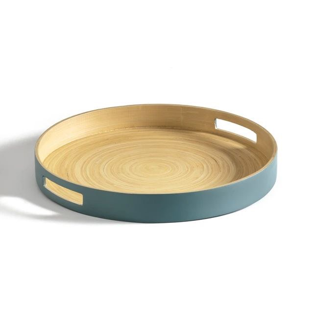 Bandeja de servicio de laca de madera redonda ecológica con incrustaciones de fregona para servir alimentos y decoración del hogar en material de PC para sala de estar
