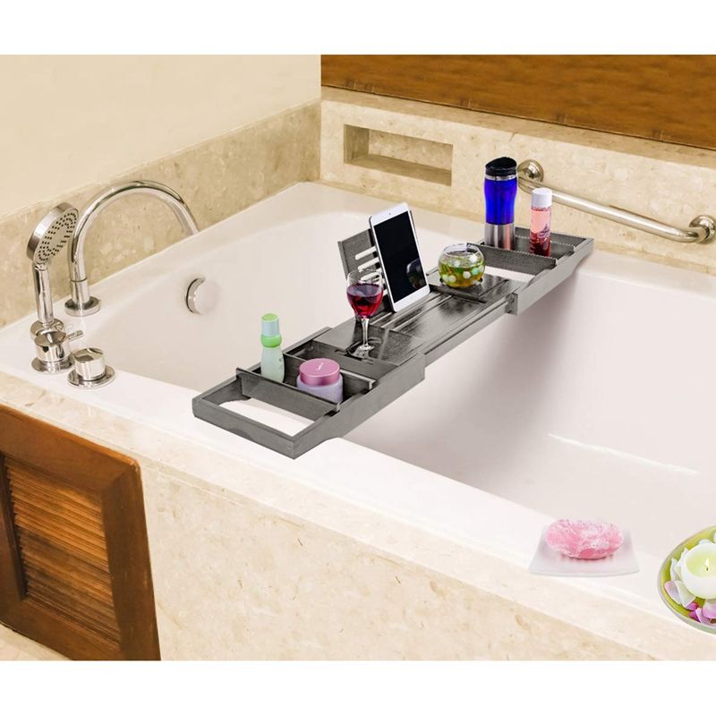 EG-bamboo bathtub caddy tray organizer