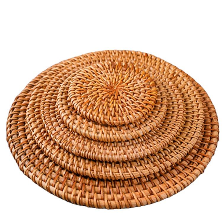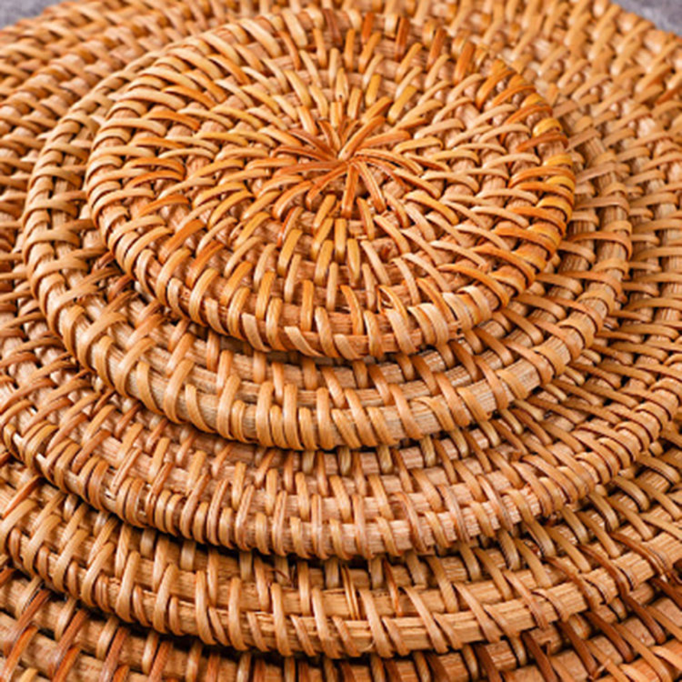 Plato de Ratán Natural con Diseño Floral, Vietnam Da Nang, Posavasos de Bambú Hecho a Mano, Marca TUYET DUNG