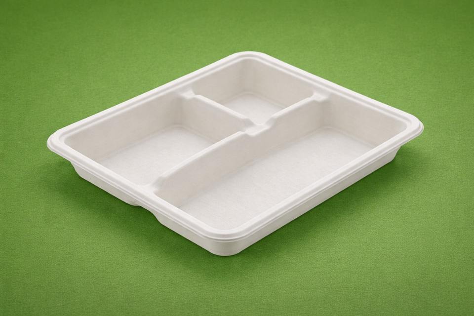 Bandeja Ecológica 100% Biodegradable y Compostable de Bagazo de Caña de Azúcar, Desechable, Apta para Microondas, Reciclable, con 3 Compartimentos, para Cenas y Fiestas