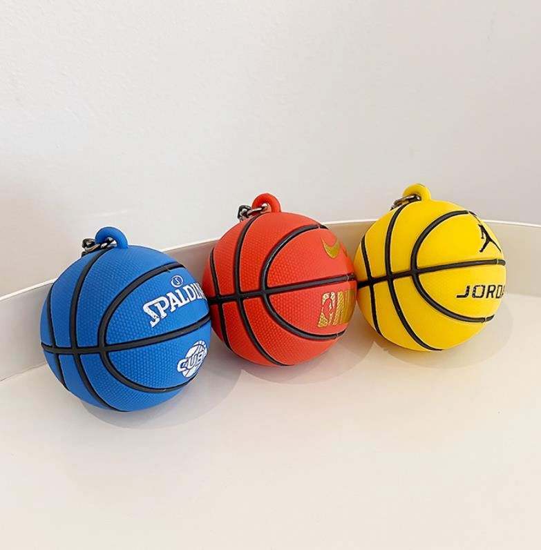 Llavero de baloncesto 3D ecológico de PVC, accesorio decorativo para bolsos y tazas, colgante para coche, adorno, anillo de cuerda, juguete de pelota