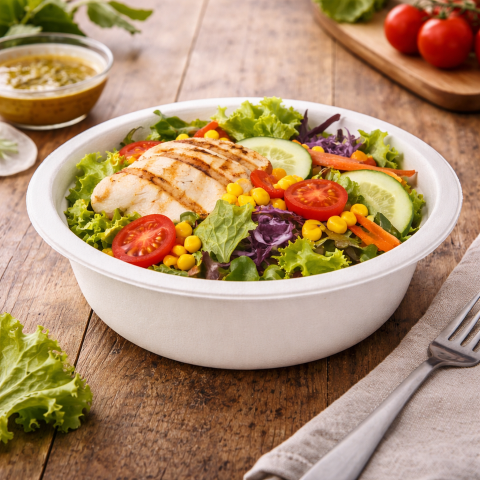 Plato Redondo Desechable para Llevar, Ecológico y Biodegradable, Hecho de Bagazo