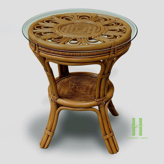 Mesa de Centro de Ratán Bohemia Ecológica, Mesa Redonda de Mimbre Hecha a Mano, Muebles Naturales para Sala de Estar y Proyectos Hoteleros