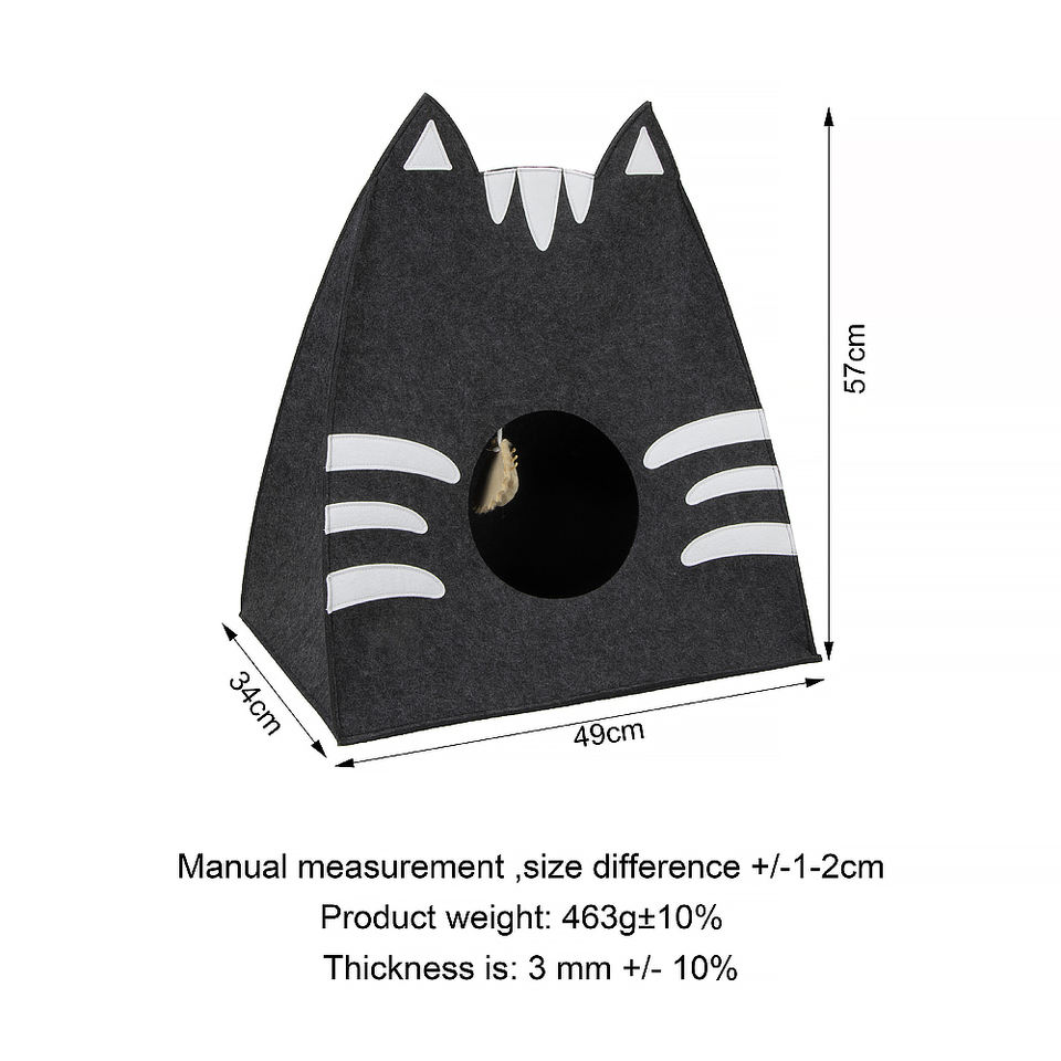 Cama para Gatos Plegable Ecológica, Diseño de Cara de Gato de Dibujos Animados, Bolsa de Fieltro para Mascotas, Casa para Gatos, Relleno de Poliéster Extraíble y Lavable