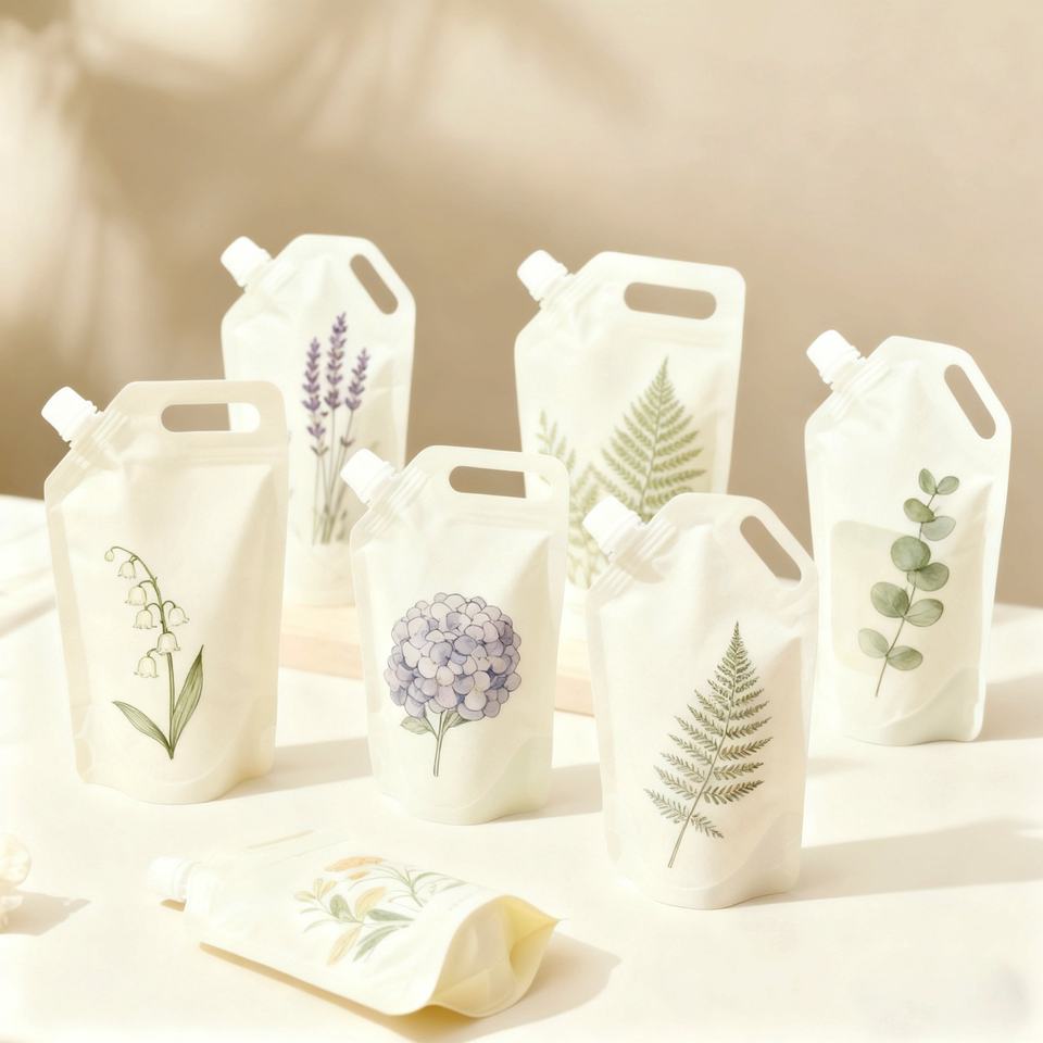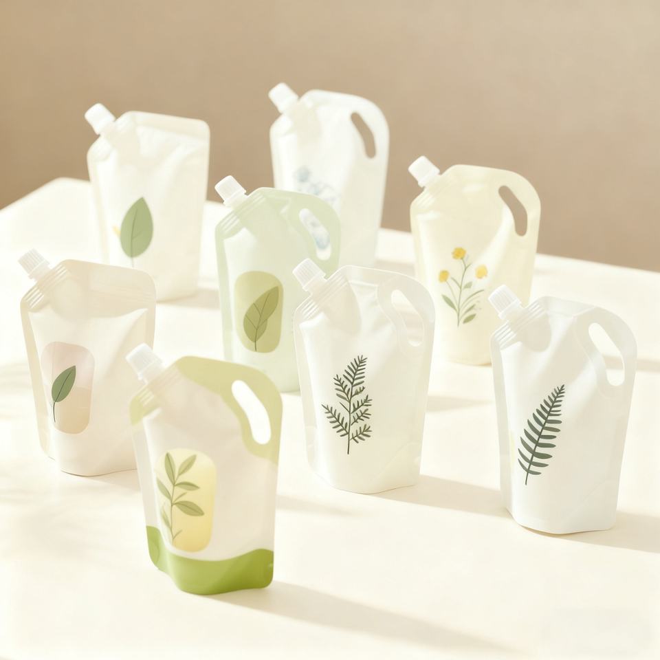 Bolsa con Boquilla Personalizada Ecológica, a Prueba de Fugas, para Detergente Líquido, Jabón de Manos, Cosméticos, Cuidado Personal, Recarga