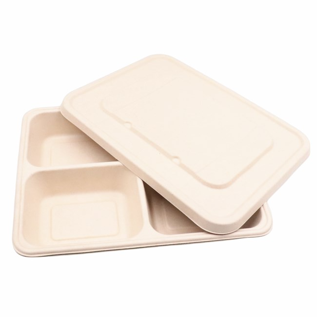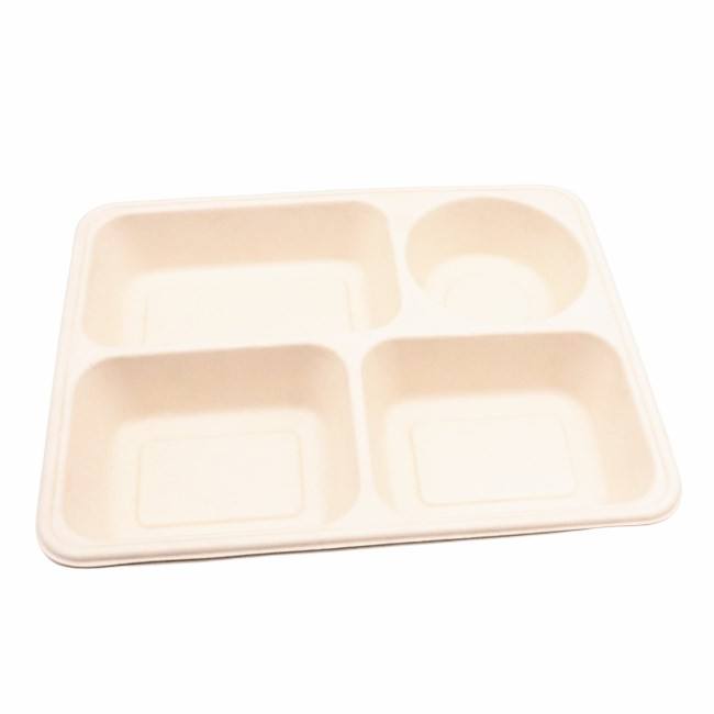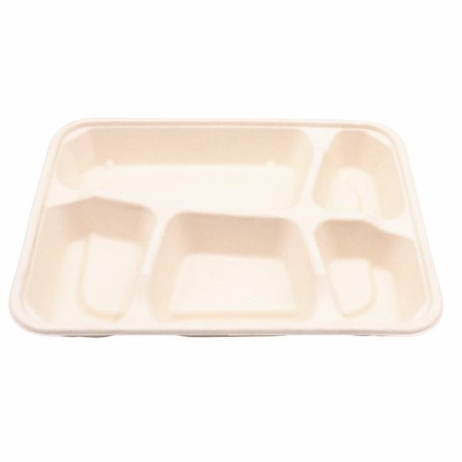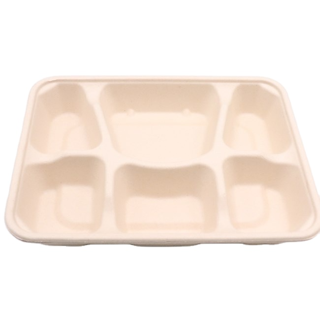 Bandeja Ecológica Desechable de 6 Compartimentos, Biodegradable, de Bagazo de Caña de Azúcar, Forma Personalizada, Color Natural, para Comida y Fiestas