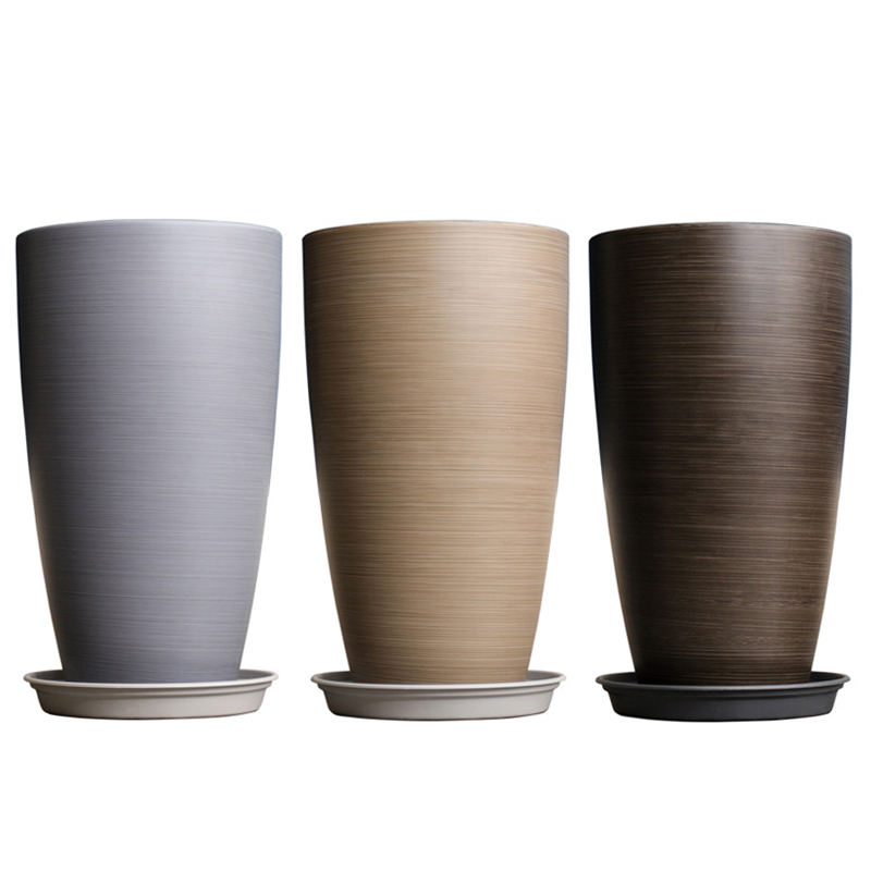 Maceta Cilíndrica Grande de Plástico Ecológica y Duradera con Rayas Horizontales para Jardines Interiores y Exteriores