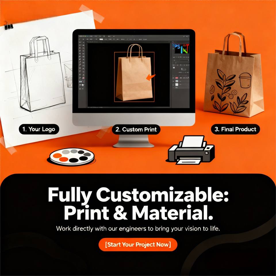Bolsa de papel personalizada artesanal con su propio logotipo con mango plano y retorcido