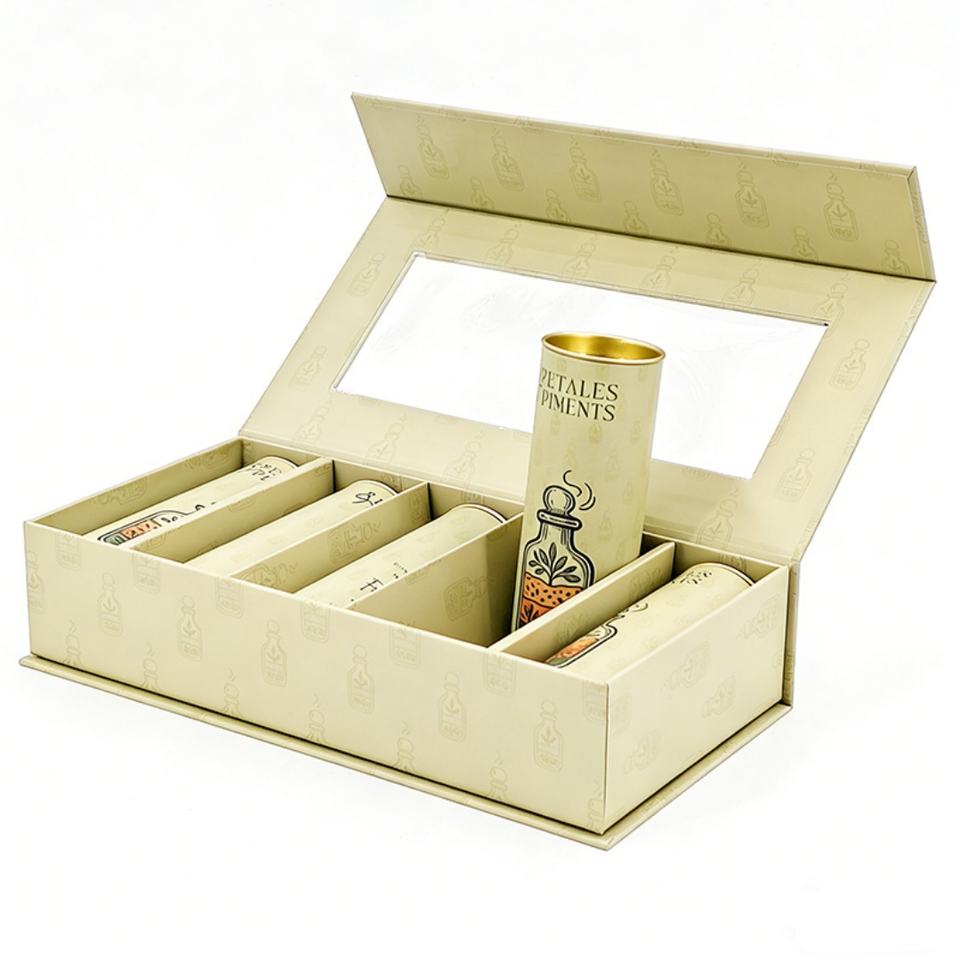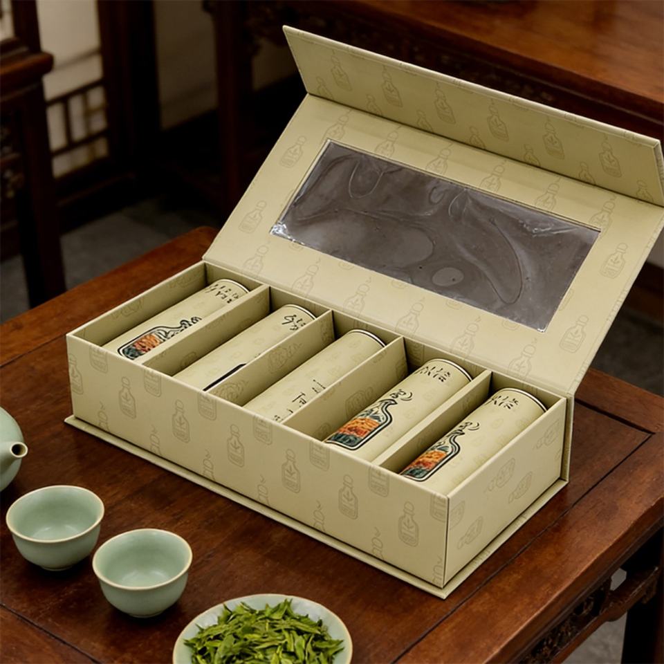 Caja de Regalo Ecológica, Caja de Embalaje de Té de Alta Gama, Caja de Regalo Integrada con Tubo de Papel en el Interior