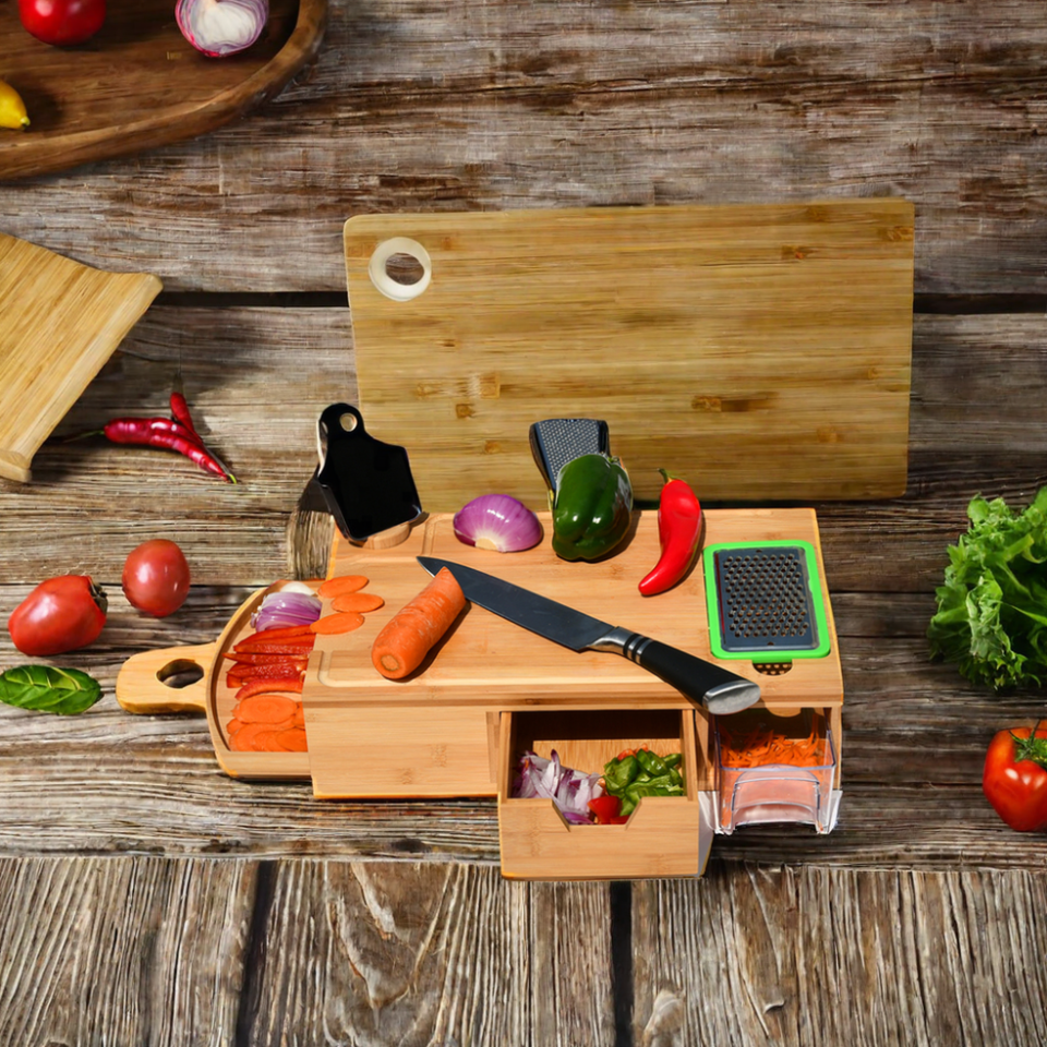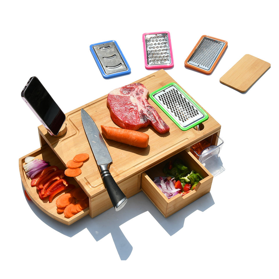 Nombre:Tabla de cortar de bambú de madera ecológica con contenedores