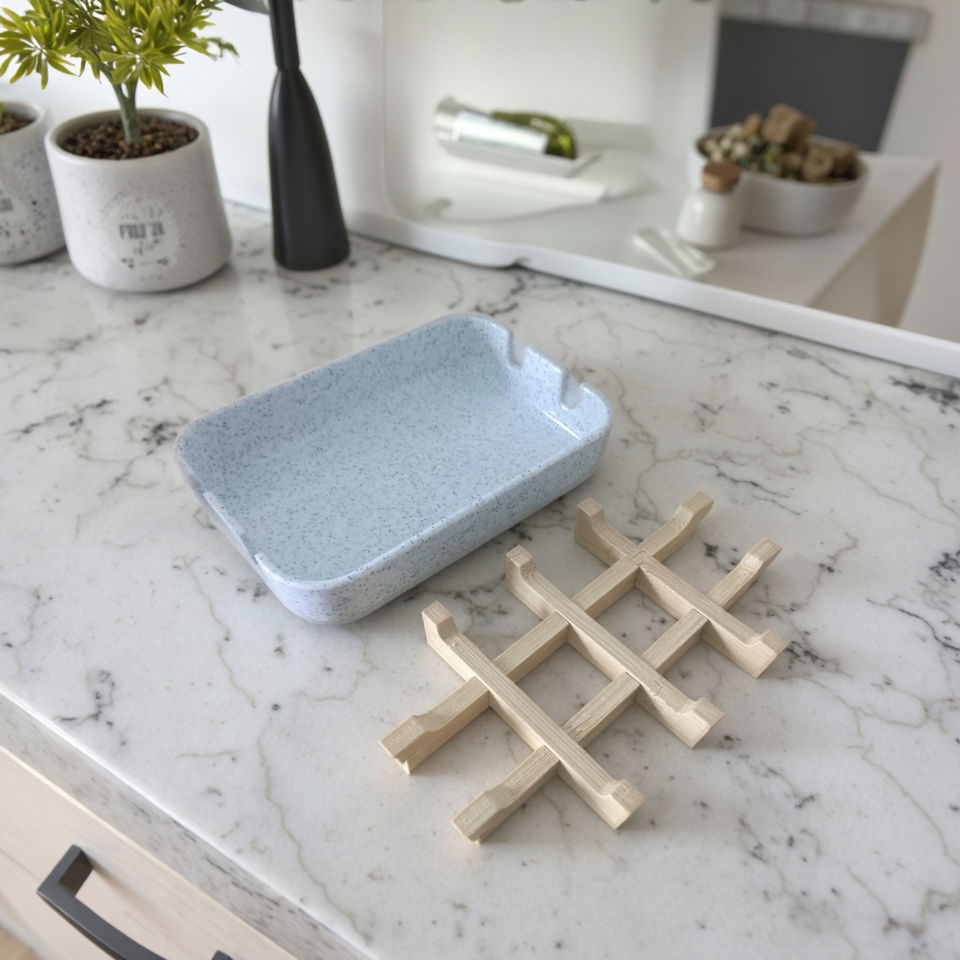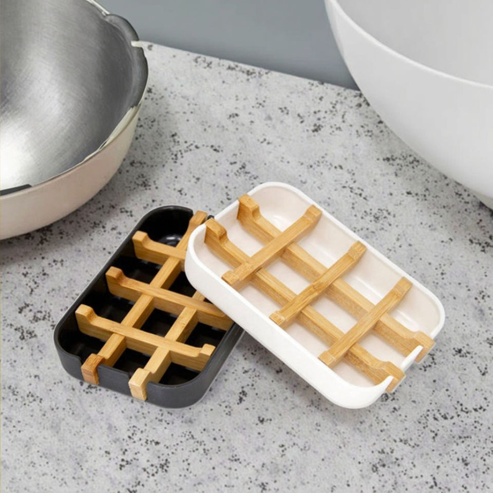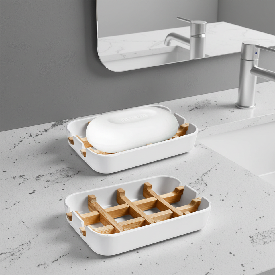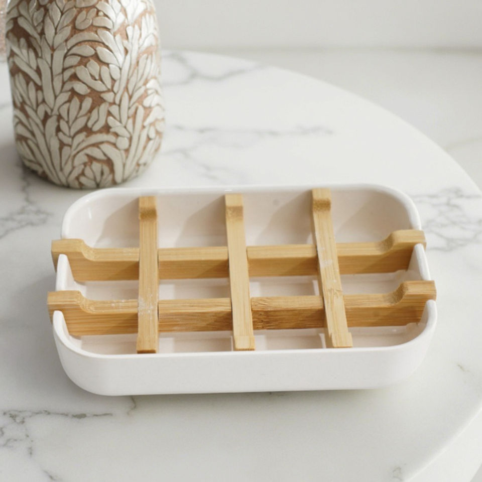 Jabonera Rectangular de Bambú Ecológica y Moderna con Soporte para Ducha para Baño y Hotel