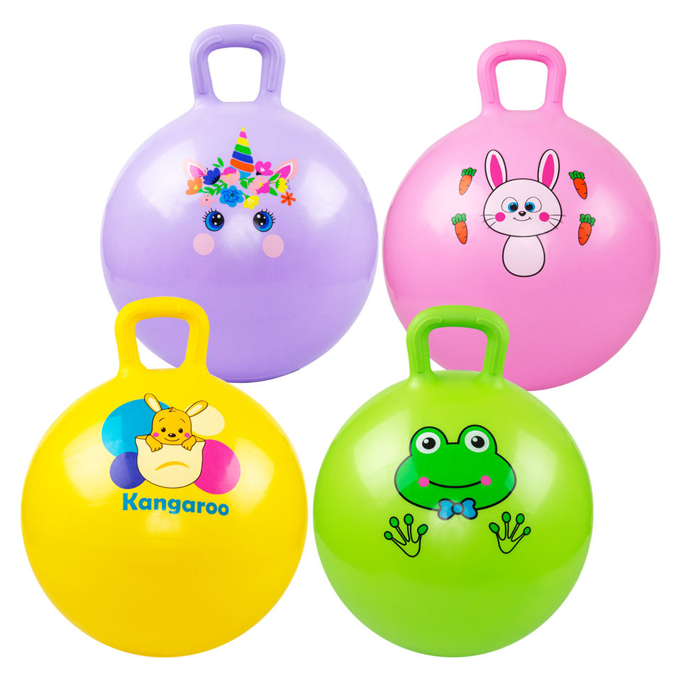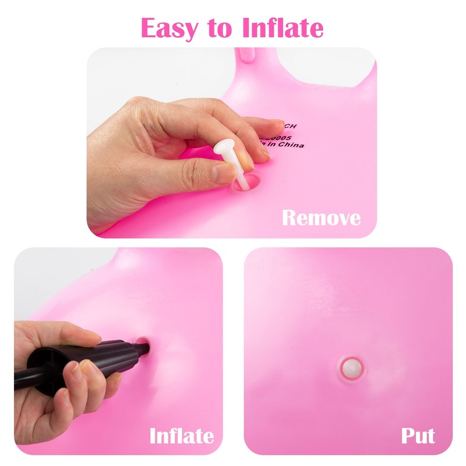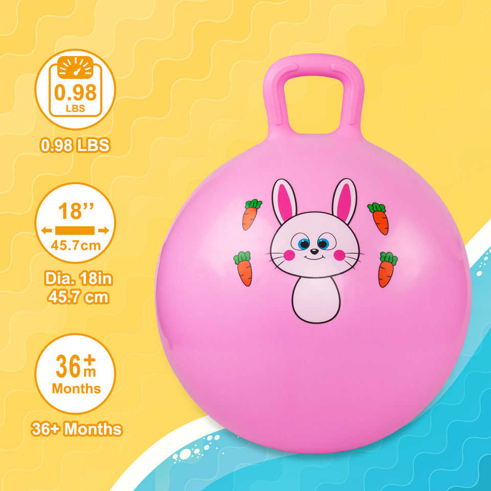 Pelota inflable de PVC ecológica para niños, juguete para saltar Hoppity Hop, juguetes para sentarse y rebotar en los juguetes, Bola de tolva de conejito rosa con mango