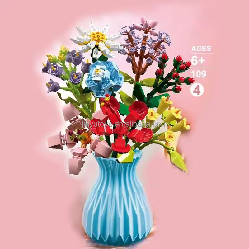 Bloques de Construcción Ecológicos de Plástico, Juego de Bloques de Ramo de Rosas en Maceta, Juguete DIY, Regalo para Fiestas