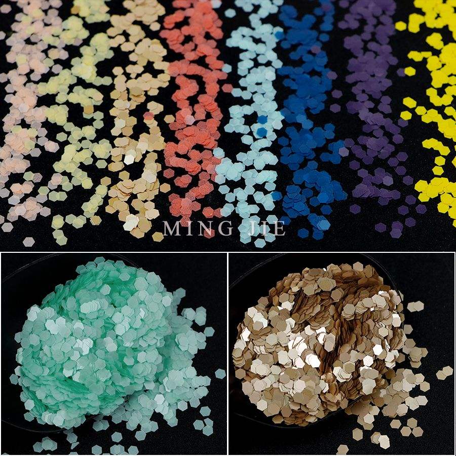 Polvo de purpurina mate y pastel de poliéster ecológico, vaso con forma de estrella Hexagonal, lentejuelas para uñas, 1kg, pedido mínimo, bolsas empaquetadas