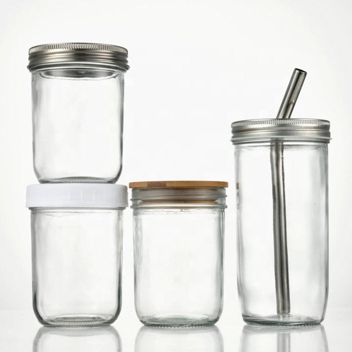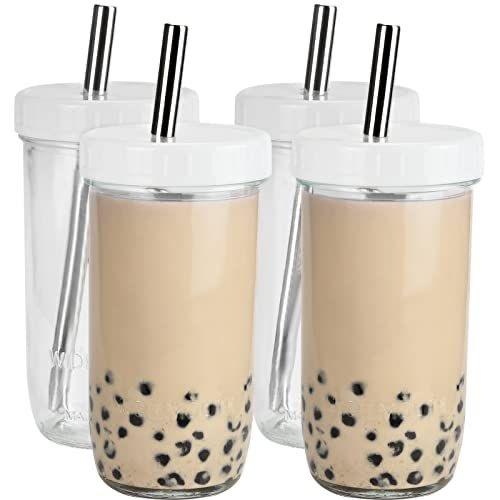 Vaso Reutilizable Ecológico de Vidrio Flint para Té Boba con Tapa de Rosca de Acero Inoxidable y Pajita, 500ml 650ml 700ml