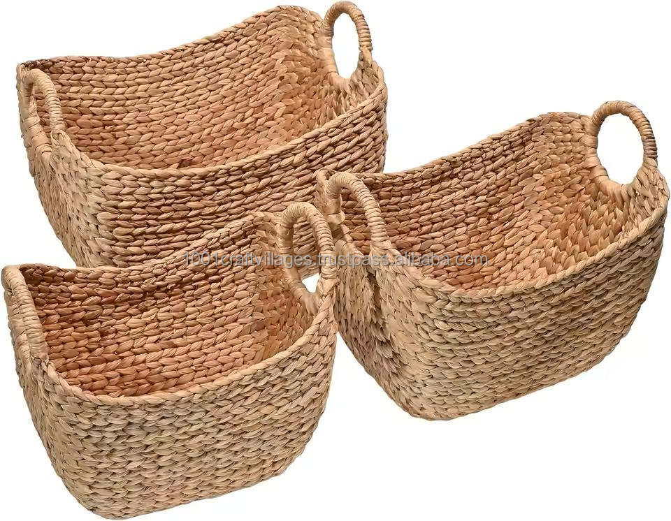 Cesta Redonda Rústica Ecológica de Jacinto de Agua Hecha a Mano para Almacenamiento Decorativo y Organización Elegante del Hogar, de Vietnam