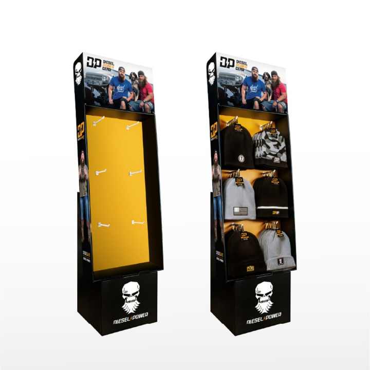 Expositor de Suelo Ecológico para Supermercados, Personalizable, Plegable, de Cartón Reciclado, con Ganchos para Colgar Productos Electrónicos