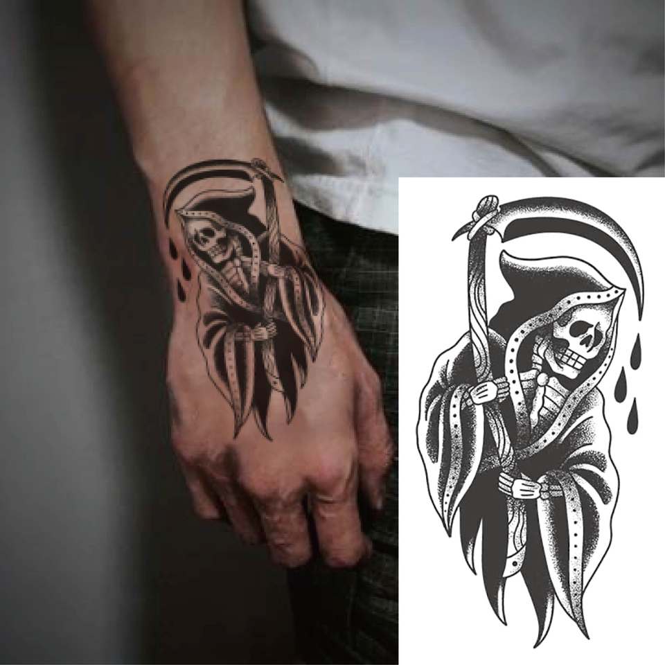 Pegatina de Tatuaje de Papel Resistente al Agua Ecológica, Personalizada con Diseño de Dios, Muerte y Fantasma, Semipermanente para Brazo, Mano, Cara y Cuerpo, para Hombres y Mujeres