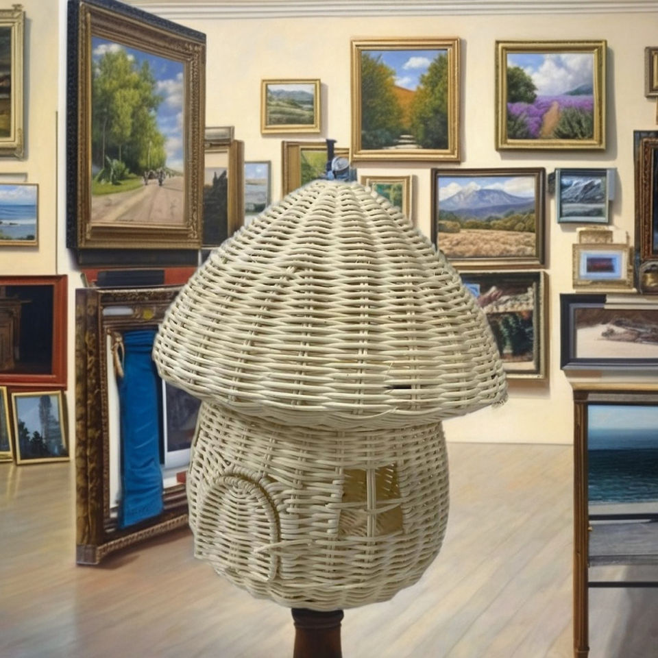 Decoración Ecológica de Ratán Blanco en Forma de Hongo para Restaurantes, Hoteles, Resorts y Oficinas