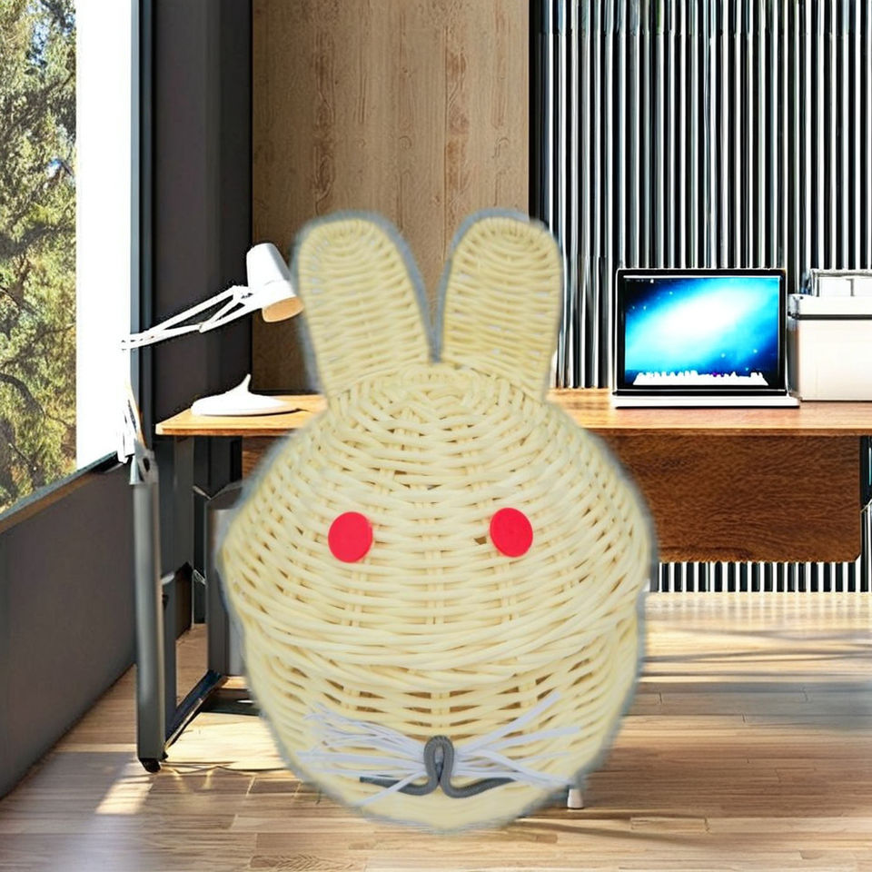 Decoración de conejo de ratán blanco ecológico. Un encantador adorno redondo hecho a mano para salas de estar, oficinas, hoteles y restaurantes.