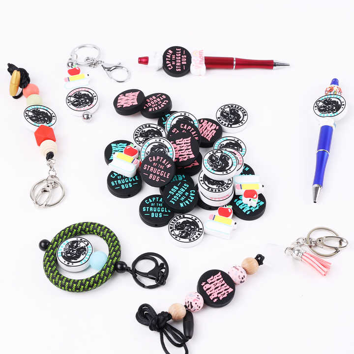 Ecológico muñequera llavero pulsera pluma fabricación Diy Bpa personaje de silicona libre cuentas focales dibujos animados al por mayor