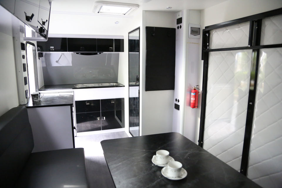 Equipado con fregadero, estufa, cocina deslizable, 2 estufas