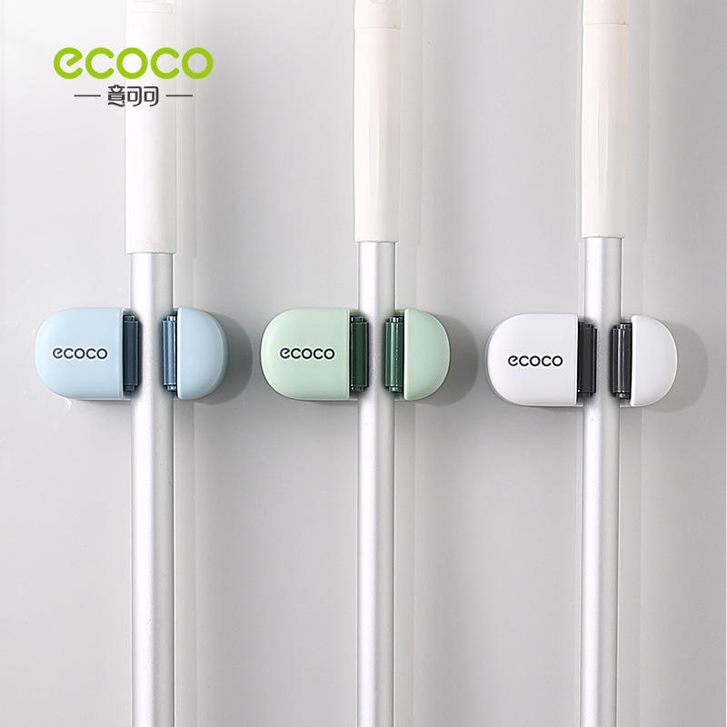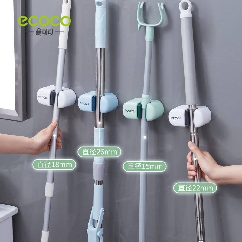 Ecoco Mop Hook Rack - Soporte de pared de plástico para almacenamiento con clips para el hogar, color azul y verde nórdico E2201