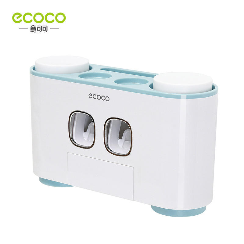 Soporte para cepillos de dientes Ecoco con dispensador de pasta dental, montaje con ventosa, color rosa nórdico, funciona con pilas