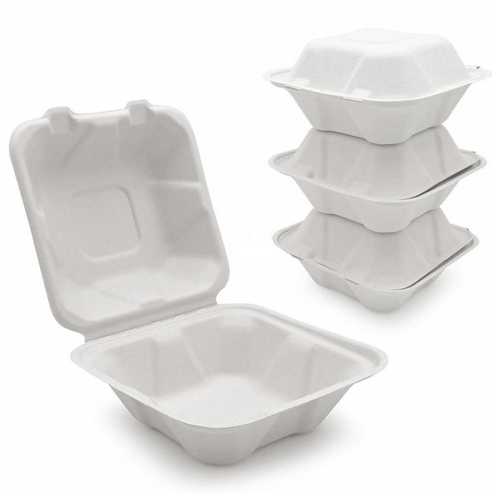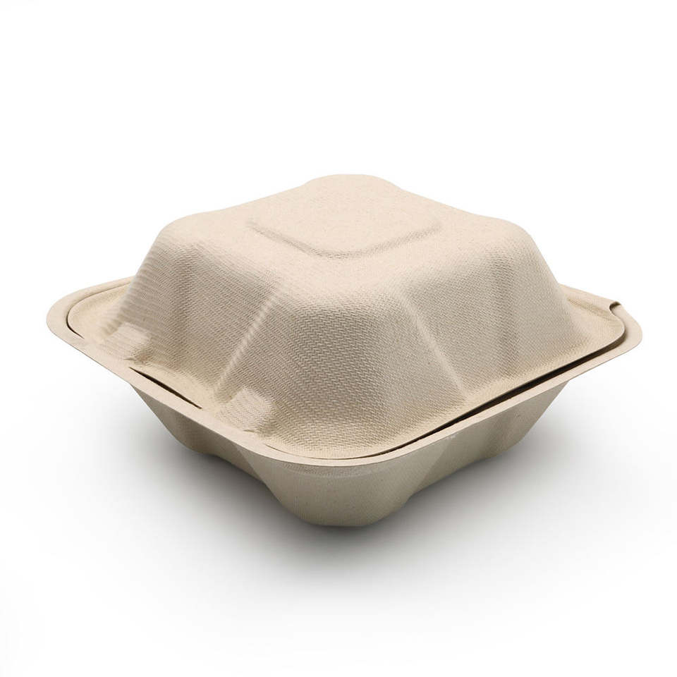 Respetuoso con el medio ambiente personalizado blanco 6 pulgadas Biodegradable caña de azúcar bagazo hamburguesa caja de concha Donut pastelería pastel embalaje contenedor de alimentos