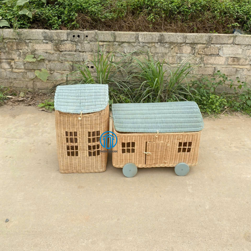 Casa de ratán ecológica, cesta de almacenamiento para niños, cesta para niños para organización de habitaciones