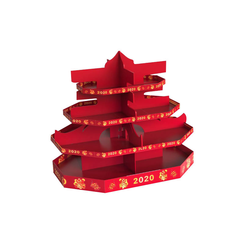 Promoción personalizada de bajo costo para soporte de exhibición de tienda Palé corrugado para bocadillos y uso en supermercados