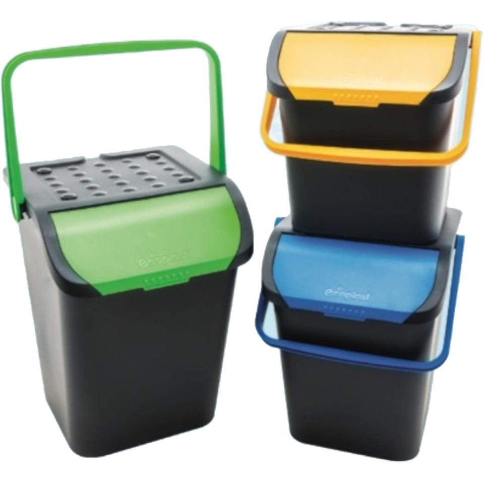 Juego de 3 Contenedores de Basura Dobles Apilables Ecoplast de 28 Litros, Piezas Surtidas, Recolección de Residuos Separada, Contenedores de Reciclaje Ecológicos Anti-Desperdicio