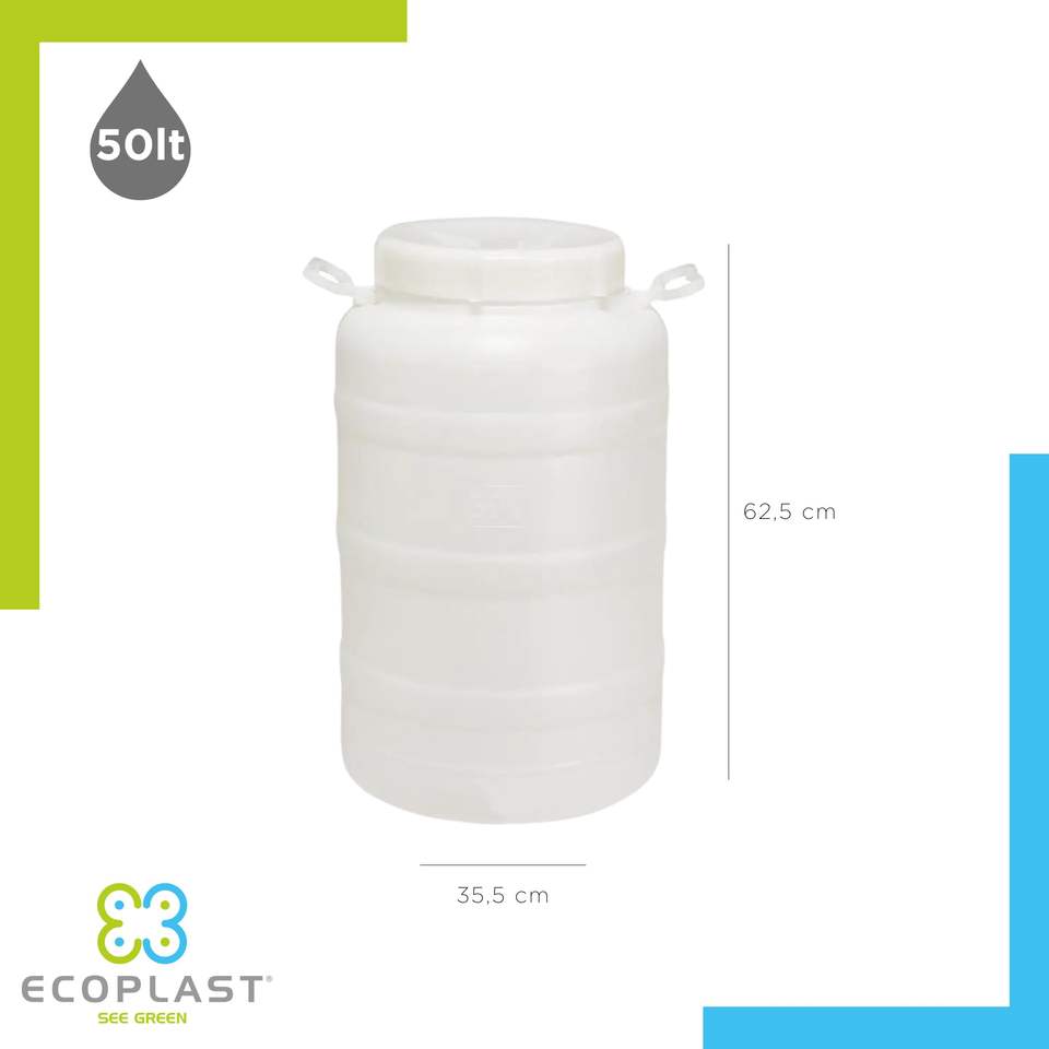 Ecoplast Fusto Bocca Larga 50L, Contenedor de Plástico Resistente para Uso en la Cocina, Deformable, para Guardar Líquidos y Aceite, con Cierre a Presión