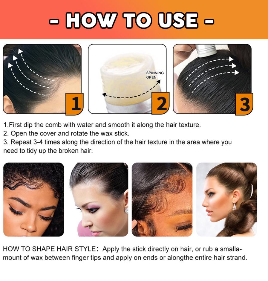 Cera para el Cabello en Barra de Fijación Fuerte para Control de Bordes y Trenzas, Control de Frizz, Brillo y Suavidad