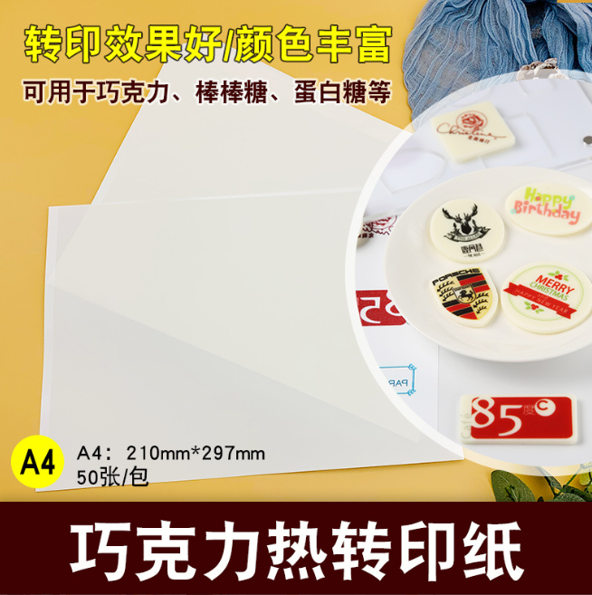 Papel de transferencia de Chocolate comestible logotipo Patrón Impresión Pastel Hornear Chocolate Insertar Piruleta Impresión de fotos