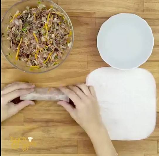 Wrap meat eggs mushrooms vermi to fry until crispy