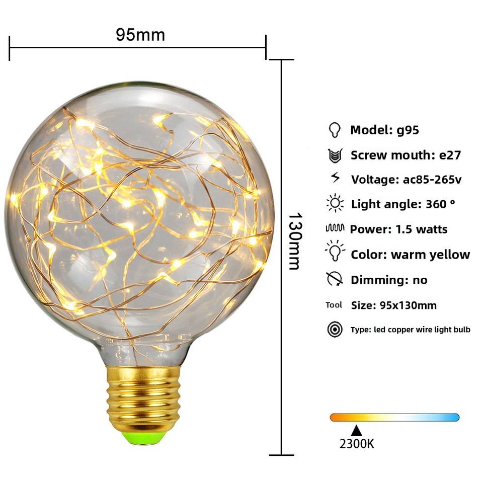 Lámpara de Alambre de Cobre con Bombilla Edison, Luces Decorativas de Navidad LED que Funcionan con Pilas, Iluminación de Cristal